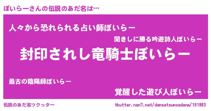 | 女子向けラノベタイトル風あだ名 | 『誰かこのぼいらーを説明してください! ~契約から始まるウェディング~』 |