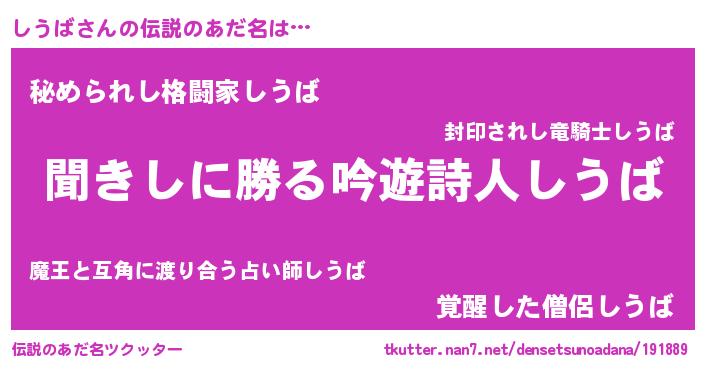 | ヘコむあだ名 | 『しうば(笑)』『つくし』『しうを』 |