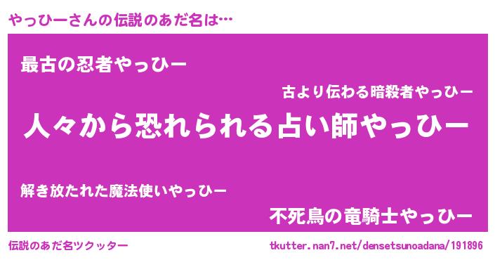 | ヒーロー風カッコイイあだ名 | 『正義の使者やっひー』『仮面ヤッダー』 |
