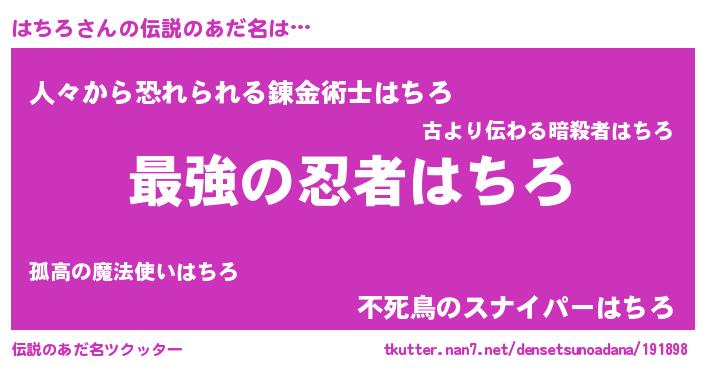 | 意味不明あだ名 | 『ニラ科はちろ属』『自称はちろ』 |