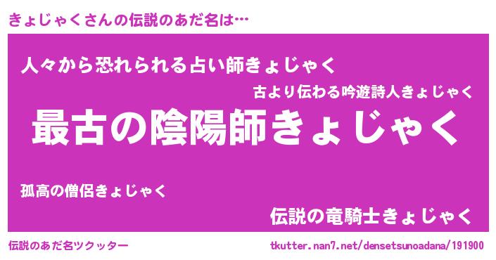 | ファンタジー風あだ名 | 『ゼキョトゥ』『エターナルキョジャクー』 |