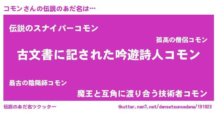 | ファンタジー風あだ名 | 『コモディッシュ』『コモフェル』 |
