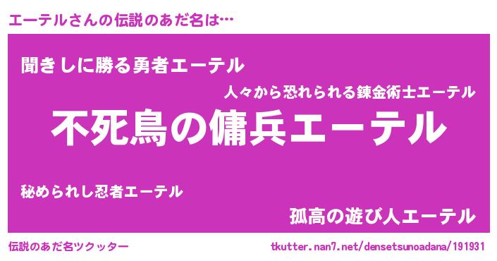 | ファンタジー風あだ名 | 『エーフェル』『エーディッシュ』 |