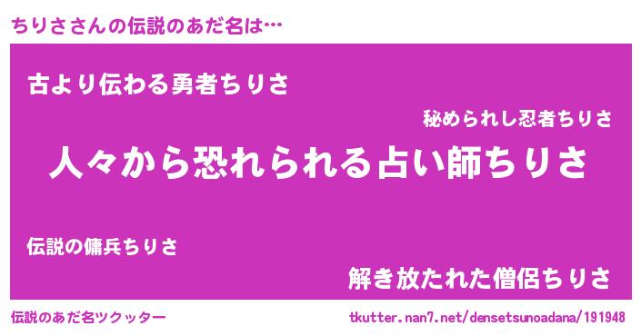 | ヒーロー風カッコイイあだ名 | 『友情の使者ちりさ』『ネオチリサ』 |