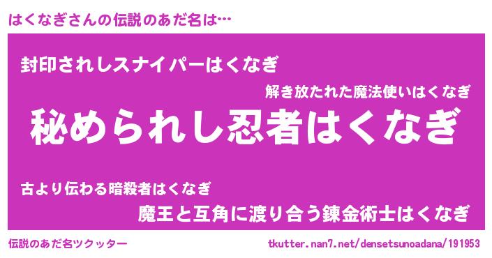 | ヒーロー風カッコイイあだ名 | 『超時空戦士ハクナギ』『仮面ハクダー』 |