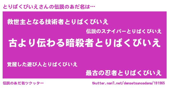| 肩書あだ名 | 『とりばくびいえ教官』 |