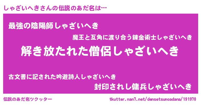 | ヒーロー風カッコイイあだ名 | 『幻影騎士シャ』『究極戦士シャザイヘキ』 |