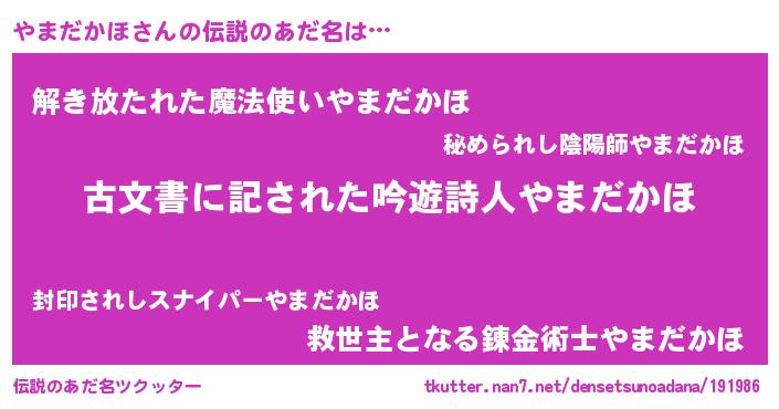 | 意味不明あだ名 | 『永久保存やまだかほ』『自称やまだかほ』 |