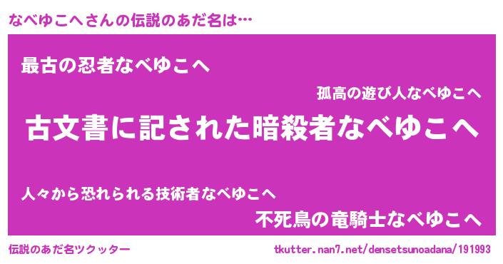 | 意味不明あだ名 | 『自称なべゆこへ』『永久保存なべゆこへ』 |