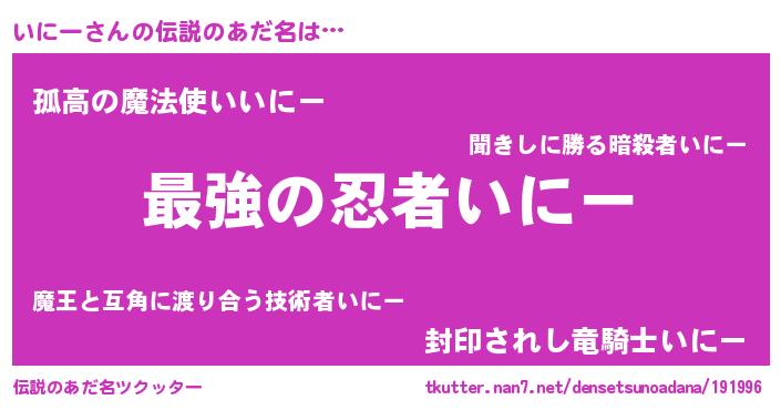| 2回繰り返すあだ名 | 『いいにに』『いじいじ』『いにいに』 |