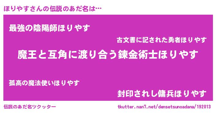 | 女子向けラノベタイトル風あだ名 | 『ほりやす恋絵巻』『闇のほりやす』 |