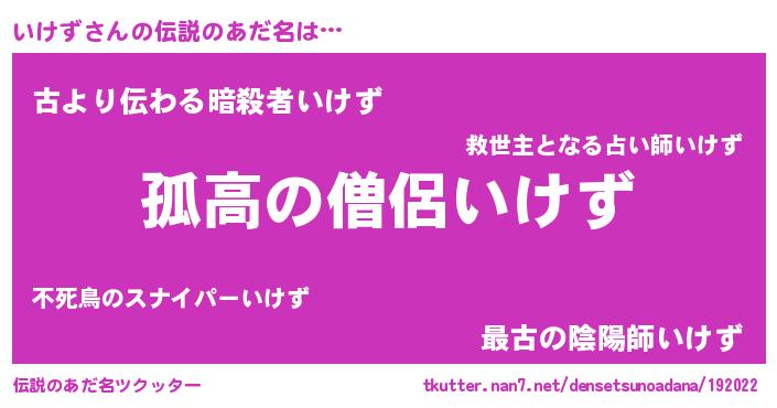 | ヒーロー風カッコイイあだ名 | 『ウルトラ戦士イケズ』『幻影騎士イケ』 |