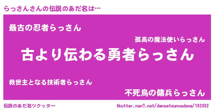 | ヒーロー風カッコイイあだ名 | 『仮面ラッダー』『ネオラッサン』 |