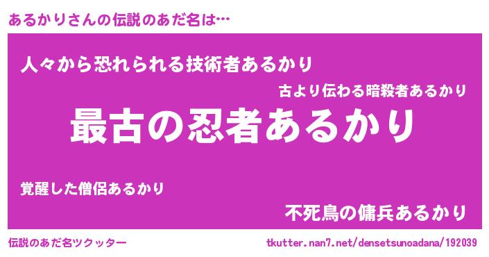 | 意味不明あだ名 | 『あるかりフォーエバー』 |