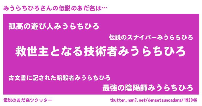 | ヒーロー風カッコイイあだ名 | 『天空の使者みうらちひろ』 |