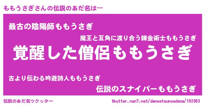 | ヒーロー風カッコイイあだ名 | 『天弓騎士モモ』『スーパーモモウサギ』 |
