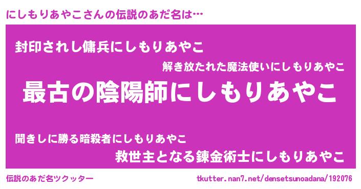 | ファンタジー風あだ名 | 『カークニシラー』『ニシフェル』 |