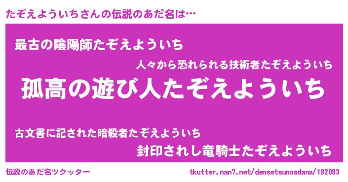 | 意味不明あだ名 | 『とにかく怪しいたぞえよういち』 |