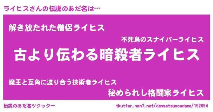 | ポケモン風あだ名 | 『ライセウス』『ゼニライ』 |