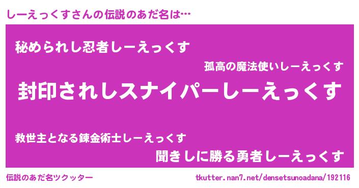 | ヒーロー風カッコイイあだ名 | 『スーパーシーエックス』『仮面シーダー』 |