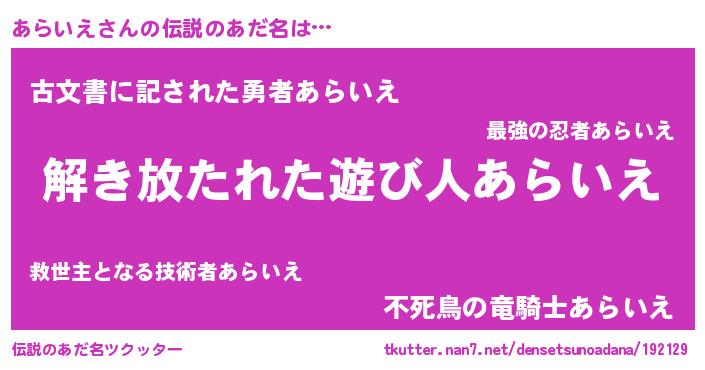 | 意味不明あだ名 | 『とにかく怪しいあらいえ』 |