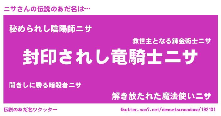 | ファンタジー風あだ名 | 『ニサフェル』『エターナルニサー』 |