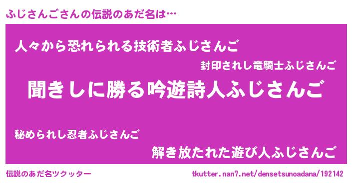 | 女子向けラノベタイトル風あだ名 | 『異世界で失敗しない100のふじさんご』 |