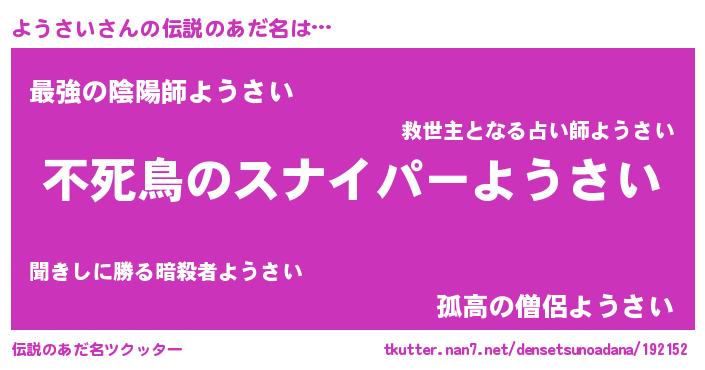 | ファンタジー風あだ名 | 『ヨウフェル』『エターナルヨウサイー』 |