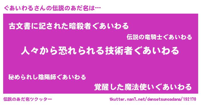 | ポケモン風あだ名 | 『グックウザ』『グーアイ』 |