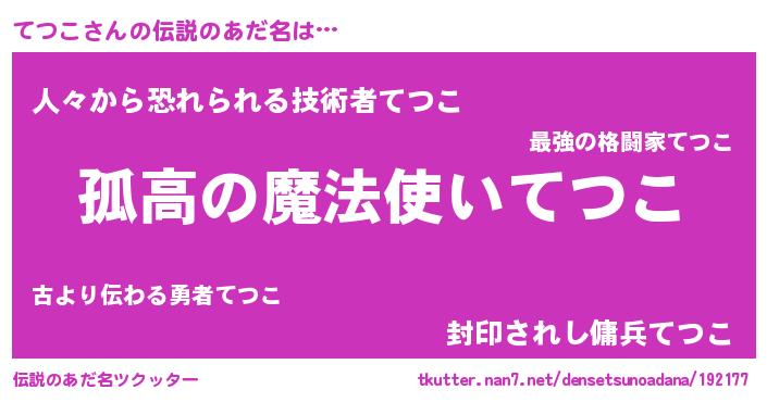 | 意味不明あだ名 | 『とにかく怪しいてつこ』『自称てつこ』 |