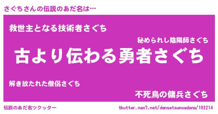 | ヒーロー風カッコイイあだ名 | 『ネオサグチ』『仮面サグダー』 |