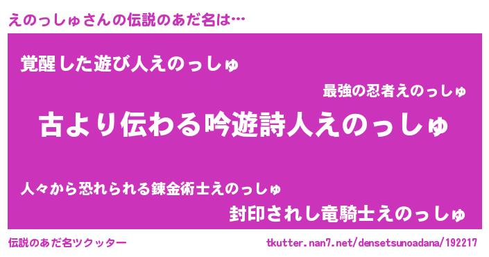 | 意味不明あだ名 | 『住所不定無職えのっしゅ(6歳)』 |