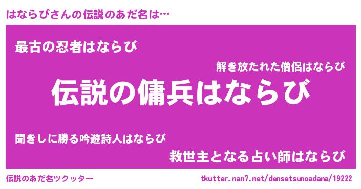 | ヒーロー風カッコイイあだ名 | 『スーパーハナラビ』『炎刃騎士ハナ』 |