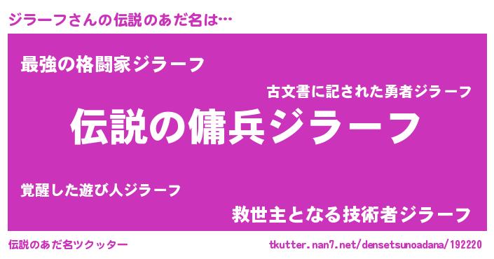 | 意味不明あだ名 | 『住所不定無職ジラーフ(40歳)』 |