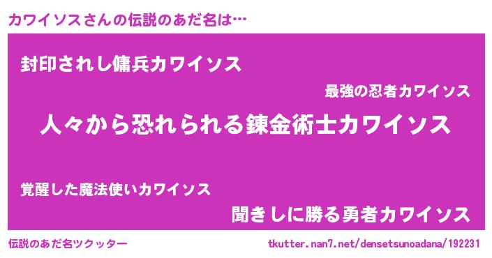 | ヘコむあだ名 | 『カワっふぃ~』『カワイソス(笑)』 |