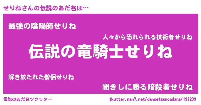 | 男性向けラノベタイトル風あだ名 | 『セリネスレイヤー』 |