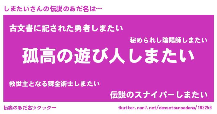 | 意味不明あだ名 | 『とにかく怪しいしまたい』 |