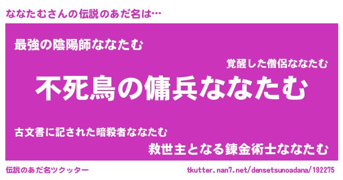 | 胡散臭い通販商品みたいなあだ名 | 『モテモテ間違いなし水晶球…その名も「ななたむ」』 |