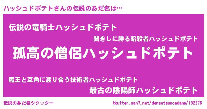 | 意味不明あだ名 | 『自称ハッシュドポテト』 |