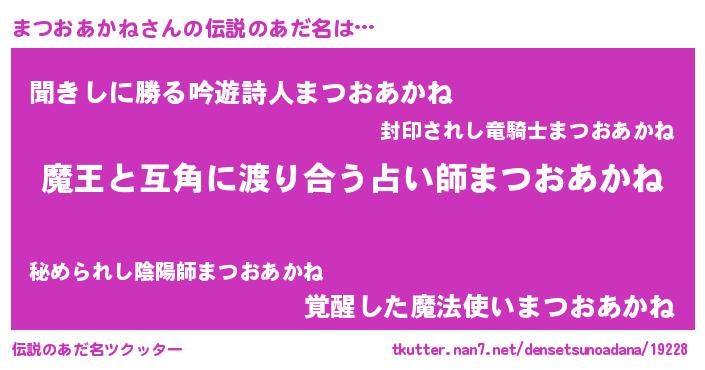 | ヘコむあだ名 | 『まつおあかね(爆)』『まつお』 |