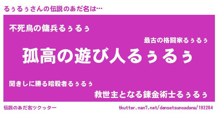 | ヒーロー風カッコイイあだ名 | 『超時空戦士ルゥルゥ』『銀牙騎士ルゥ』 |