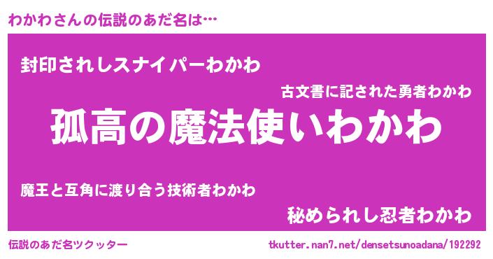 | ヒーロー風カッコイイあだ名 | 『超時空戦士ワカワ』『幻影騎士ワカ』 |