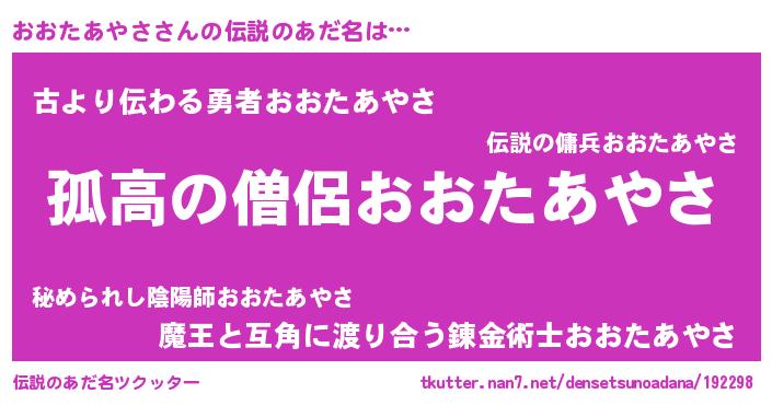 | ヒーロー風カッコイイあだ名 | 『暗黒騎士オオ』『ネオオオタアヤサ』 |