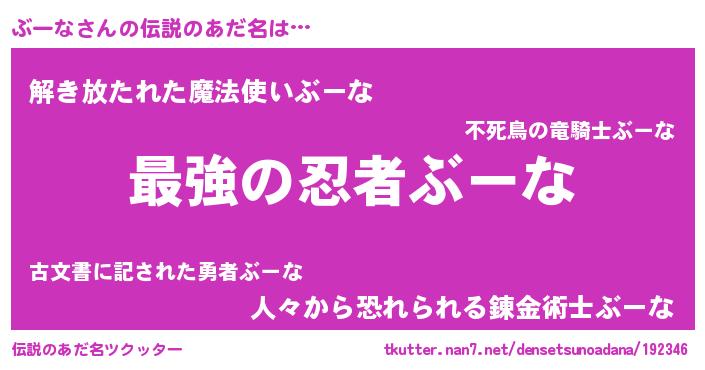 | ファンタジー風あだ名 | 『エターナルブーナー』『ゼブートゥ』 |