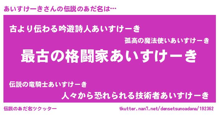 | 意味不明あだ名 | 『あいすけーきフォーエバー』 |