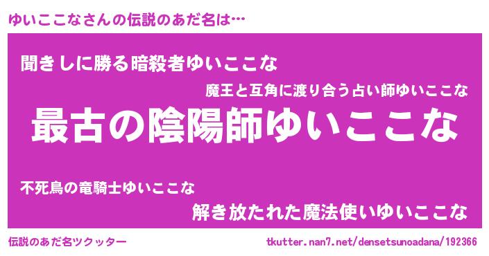 | ファンタジー風あだ名 | 『エターナルユイココナー』『ゼユイトゥ』 |