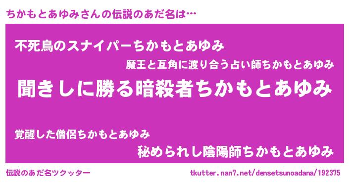 | 意味不明あだ名 | 『永久保存ちかもとあゆみ』 |