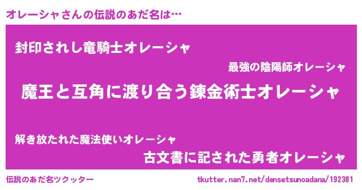 | ヒーロー風カッコイイあだ名 | 『サイバー戦士オレーシャ』 |