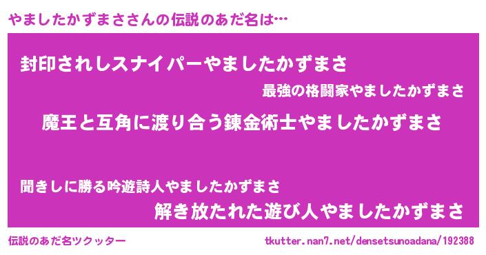 | 意味不明あだ名 | 『住所不定無職やましたかずまさ(81歳)』 |
