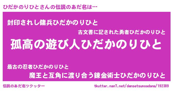 | 胡散臭い通販商品みたいなあだ名 | 『信頼と実績のペンダント…その名も「ひだかのりひと」』 |